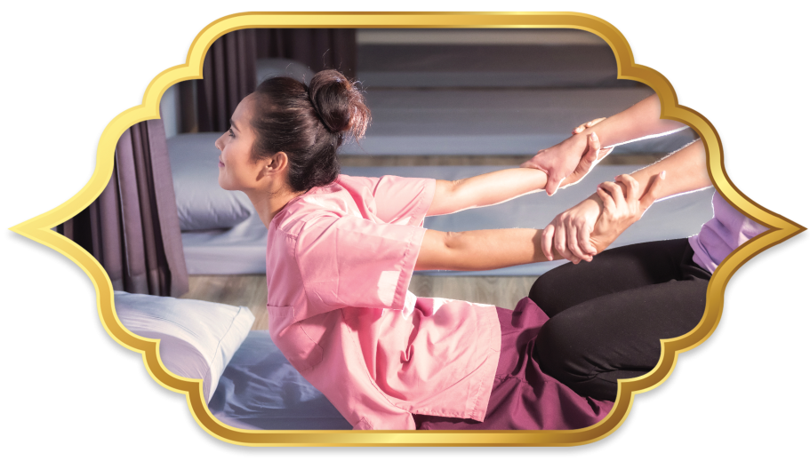 In der traditionellen Thai Massage erzielt die Kombination aus passiver Dehnung im Sinne der Yogalehre und sanfter Akupressur der Energielinien eine entspannende Muskeldeh-nung, belebende Mobilisierung der Gelenke und verbesserte Blutzirkulation.